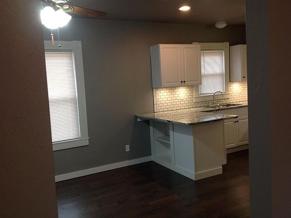Completely remodeled home. New addition adds two bedrooms and full bath. Master bedroom has large ensuite bathroom. Move in ready with washer, dryer, refrigerator, gas stove, AC/heat, new wiring, lights, fixtures, plumbing. Beautiful hard wood floors, tiled bathrooms, granite counter top in kitchen with bar. Fenced backyard plus large shed. Driveway parking. Has a contiguous lot that adds extra yard space. Close to school, parks and historic downtown Guthrie. Quick access to Hwy 33. Must see! Renter pays all utilities plus $1000/mo rent.