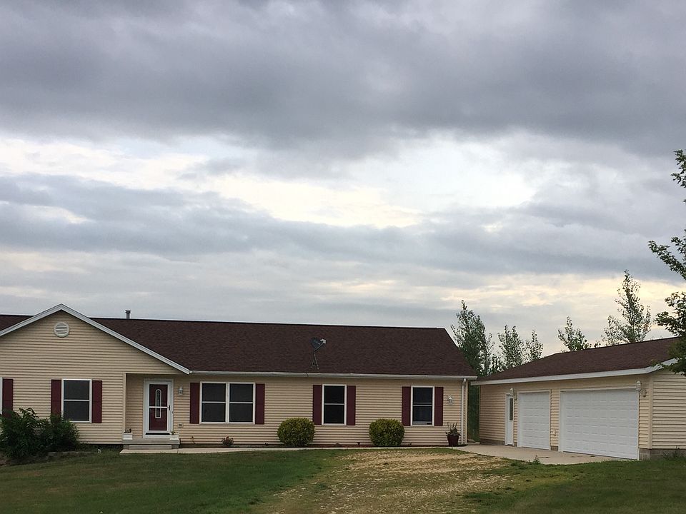 Single Family Home for sale by owner in Morrison, IL 61270. Rural Morrison, Country home on 5 acres. 5 bedrooms, 3 full baths with plumbing in basement for another if you desire, vaulted ceilings, many updates in last 3 years including, roof, all floor coverings (solid 3/4" hickory hardwoods, marble tile and carpeting, toliets, sinks, counter tops, appliances, lighting, water softener, water heater, many windows, doors, siding, 24x48 3 car garage with work area, electric and water to 24 x36 pole barn, 24x36, 12 x16 shed. Small creek on property with cute recreational firepit area for great family fun. Pasture fenced for horses.