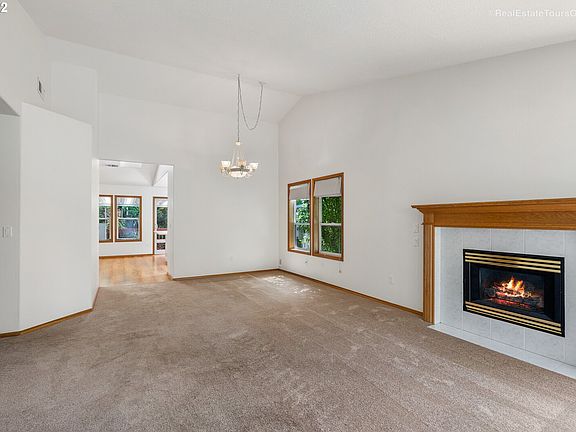 Gorgeous 1-level in quiet Tualatin neighborhood next to park-like walking paths. Vaulted ceilings, great natural light, open and airy. Updated paint and flooring. Vaulted living room w/ cozy gas fireplace. Open kitchen with moveable island, eating bar, upgraded kitchen lighting, dishwasher, double door ref w/ water & ice, double skylights and slider to backyard. Primary suite with spacious walk-in closet and vaulted ceilings. Utility room with sink. All appliances included! Large, covered deck.