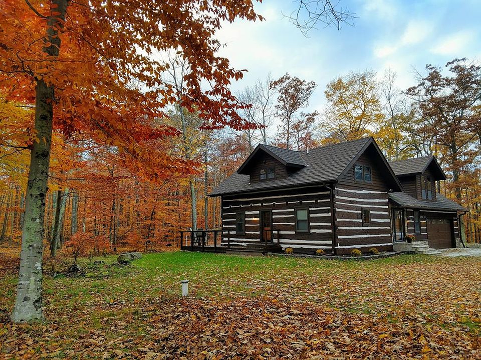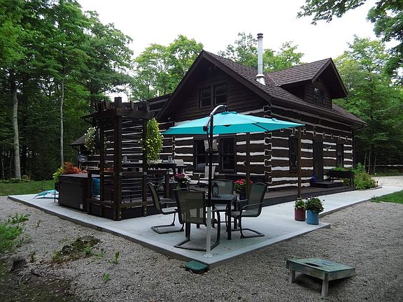 This home is pending and no longer conducting any showings. Century log home ready to move right in! High quality building, radiant floor heating, heated 3 car garage, large bedrooms, gorgeous wooded property and a small view of the water to top it off. Walk to School House Beach, walk to local fun establishment and Farm Museum. 2 great outbuildings! Beautiful outdoor entertainment area with a hot tub! Two parcels are being offered with this listing. Main part of home was built in 1992, garage and addition was built approx. 2015. There is an easement road to get to the house. The easement road can only be used by the two parcels listed. All room measurements are approximate.