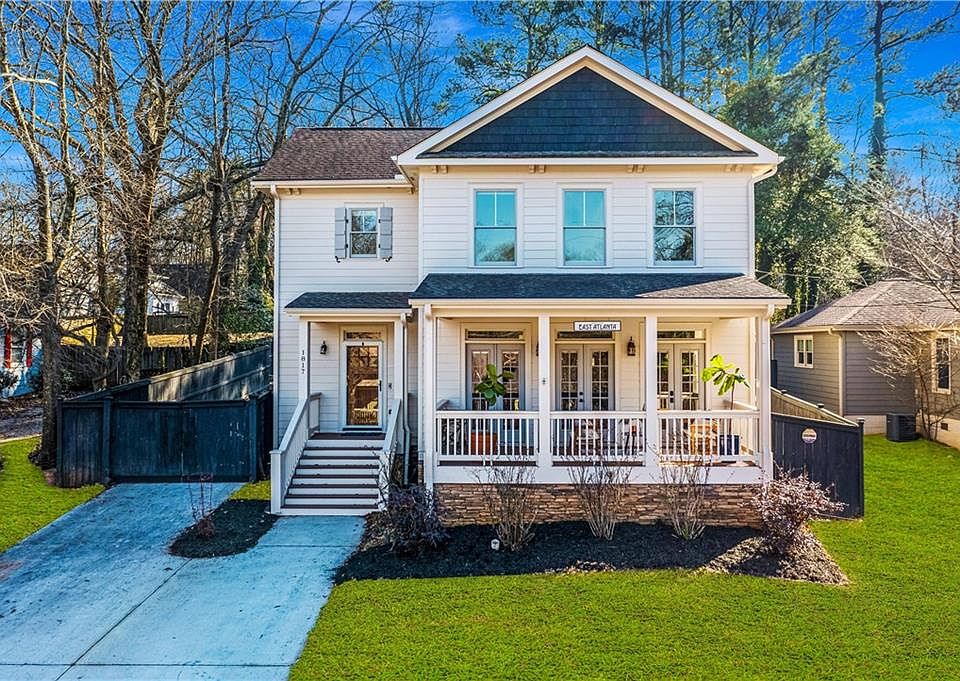 Welcome to your dream home in East Atlanta! This stunning, newer construction boasts 4 bedrooms, offering both space and modern luxury. Featuring new exterior paint, new carpet and situated on an oversized wooded lot with room to build a garage or create an entertainer’s dream home with ADU and pool. Step inside and be greeted by an inviting open concept layout, seamlessly blending the living, dining, and kitchen areas. The heart of the home features a cozy fireplace framed by warm reclaimed wood, wall sconces and built-in bookshelves, creating a warm and elegant focal point for gatherings. Designed with entertaining in mind, this home offers the perfect setting for hosting friends and family. The kitchen is a chef's delight, equipped with state-of-the-art appliances, ample counter space, and a stylish island perfect for meals on the go. The flowing layout ensures that conversations can effortlessly transition from the kitchen to the adjoining living spaces. Escape to the outdoors to discover a generously sized fenced yard, providing both privacy, security and easy care organic landscaping with Japanese Maples and Everlasting Roses. Outside, a spacious patio awaits, perfect for al fresco dining or enjoying a quiet evening under the stars. Additionally, the rocking chair front porch boasting three sets of French doors invites you to let the outside in and take in the charm of East Atlanta. With its thoughtful design, modern amenities, and a perfect blend of indoor and outdoor spaces, this home is not just a residence but a lifestyle. Conveniently located near I-20 and just 15 minutes to Hartsfield-Jackson International Airport, you’ll love living less than ½ mile to the East Atlanta Village and less than two miles to the Eastside Beltline and all of the shopping, dining and entertaining the East Side has to offer. Don't miss this opportunity to make this East Atlanta gem zoned for the Burgess-Peterson school district your own. Welcome home!