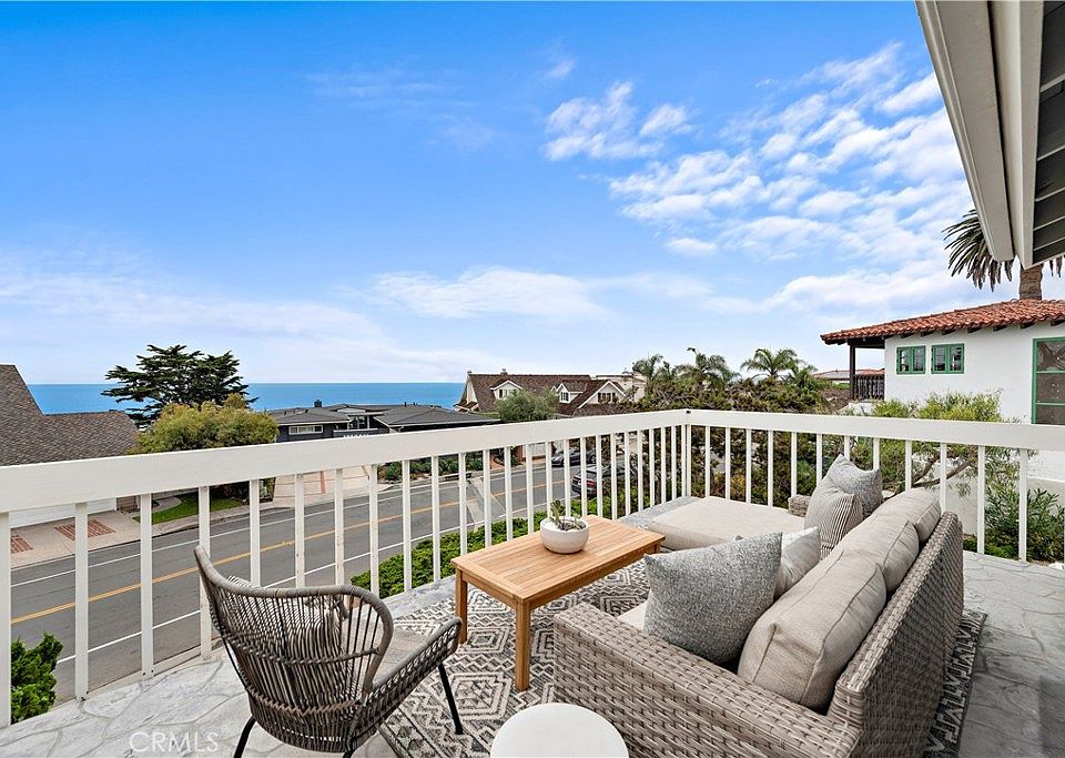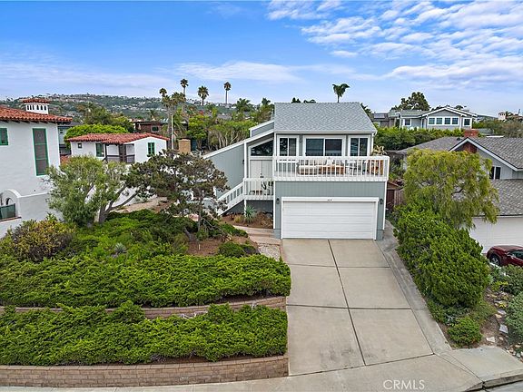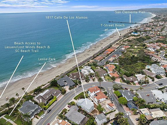 An incredible location in the coveted Lasuen Beach (Lost Winds) neighborhood and sparkling ocean views define this quintessential beach house! Only 300ft to beach access! Offering the very best in coastal living being only steps from your front door to Leslie Park and to beach access leading to Lasuen/Lost Winds Beach and the San Clemente Beach Trail. An architectural beauty perfectly positioned on a large, 7,200 sq ft lot showcasing many unique design elements. A relaxing retreat, the spacious backyard adds immense appeal to the home and was recently updated with new plantings and mulch. Head inside to discover an open, bright and spacious floor plan with 3 bedrooms, 1 bathroom and the living room on the lower level. The upper level then hosts a large primary bed/bath and sit-down ocean views from the kitchen, family room, dining and a long, spectacular viewing balcony off of the front of the home. Additional highlights throughout include a beautifully updated kitchen with stainless-steel appliances, vaulted, wood-beamed ceilings, plantation shutters and a cozy fireplace in the living room. New interior paint and new flooring. Ample parking with a two-car garage and large driveway. An unparalleled standard of coastal living awaits in this prized location only steps to the beach!