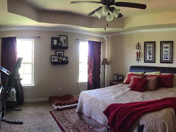 Early Occupancy Option. 1yr-Home Warranty included. Move in Ready-This Immaculate well cared for 4-Bedroom, 2-Bathroom Split floor plan Home with Open floor plan, High ceilings, fireplace and lots of windows in the living area. Spacious open kitchen with Breakfast bar, Stainless Steel appliances, lots of storage, dual sinks and plenty of cabinets. Dining area is open to the kitchen and living areas. Tray ceilings in the Master bedroom. Oversized Master Bathroom with walk in closet, stand alone shower and jetted tub. All 3 additional bedrooms feature large rooms with tray ceilings and walk in closets. Large utility room comes with front-end loading clothes washer / dryer. Additional features includes Covered patio. Sprinkler system, water softening system, Osmosis system at kitchen sink and fridge, privacy fenced in yard with dual gates. Located in Cul-de-sac area. This is A Must See Home.