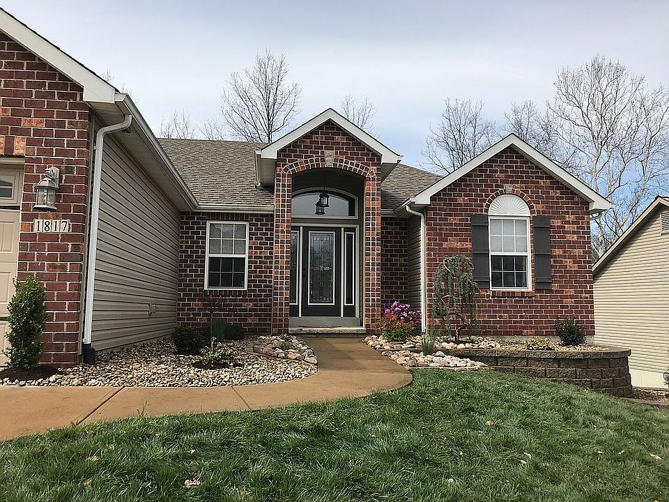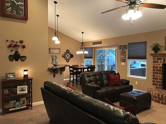 Gorgeous ranch home with 5 beds, 3 baths, featuring stone & brick elevation w/ professional landscaping in the front and backyard. Custom upgrades include stone flooring throughout the main floor, beautiful granite counter tops, stainless steel appliances. Other main floor features include open floor plan, separate kitchen and formal dining rm, main floor laundry rm/mud rm, and a masonry gas fireplace. Master bedroom features dbl vanity, soaker tub, custom tiled shower, and great walk-in closet. The professionally finished walk out lower level features a kitchen, dining area, living room, work out room, full bath, and a bedroom with a walk-in closet. 2 different unfinished storage areas. Partially covered deck is perfect for grilling and relaxing. 3 car garage means ample parking for everyone. Just minutes from shopping, dining, and the interstate.