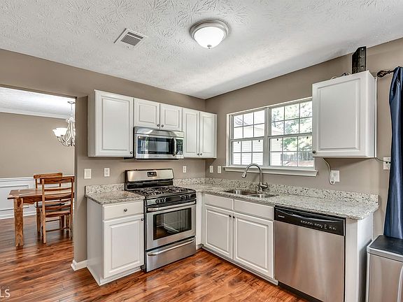 Wow! Spacious open floor plan home with granite counters, stainless appliances (2016), and hardwoods on main level. Close to shopping, restaurants, I-75/KSU/Downtown Marietta, yet tucked away from the traffic! NEW cement siding and exterior painted April 2016. Updated bathrooms with wood-look luxury vinyl floors. Level wood-fenced yard and NEST thermostat!