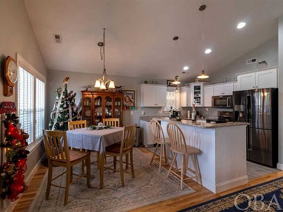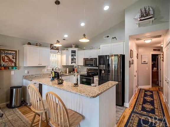 Well maintained newly constructed custom home shows like new in sought after Kill Devil Hills, Westside. Large corner lot with lots of mature landscaping, including a well for the sprinkler system which supports front, rear, and garden irrigation system. Electric installed by flag pole and wishing well for additional outlets. Fenced in back yard, with patio area and gravel seating area perfect for a relaxing evening around the firepit. Beautiful Hickory Hardwood flooring through out the living room and dining room with open concept and upgraded kitchen with granite countertops, soft close white cabinets, garbage disposal, and stainless steel appliances. New 4 system Refrigerator installed 2020. Large master with walk in closet and en suite with matching granite 2 sink vanity. Custom metal Bahama hurricane shutters installed October 2019. Smart programable thermostat, plenty of storage throughout the house with additional storage shelves installed in garage. Dry entry and large driveway for additional parking. Septic is permitted for 4 bedrooms easy to enclose the 1st floor with lots of potential. Conveniently located close to Dare Center Shopping Plaza with local shops and Restaurants, and a short walk to the sound and multi-use path.