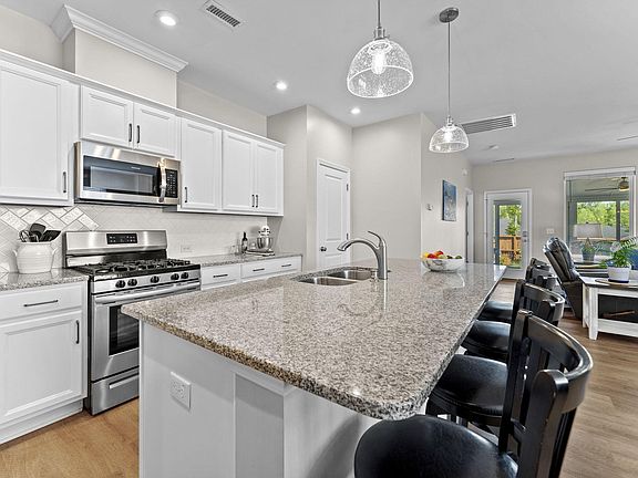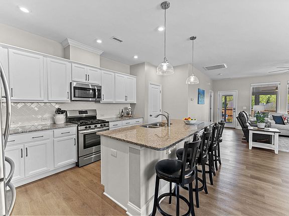 One Story Ranch home in popular Wendell Falls! Enjoy Lifestyle Living with all the amenities! Take a bike ride to the amenities or the Farmhouse Cafe'. This lovely home is beautifully appointed with a stunning kitchen and family room open floorplan, large primary bedroom, luxurious primary bathroom, 2nd bedrooms, a dedicated office/guest room, and a 3 season patio enclosure with a stamped concrete patio! The home has everything you'd expect in today's home from quartz countertops and tile backsplash to LVP flooring. Large Primary Bath and closet connected to laundry room. The private backyard is wonderful for relaxing and entertaining. This home is convenient to 440 and 540. Walking distance to Lk Myra Elem, and close to Publix, Starbucks coffee and other retail and restaurants. Be certain to check out this lovely gem in Wendell Falls!