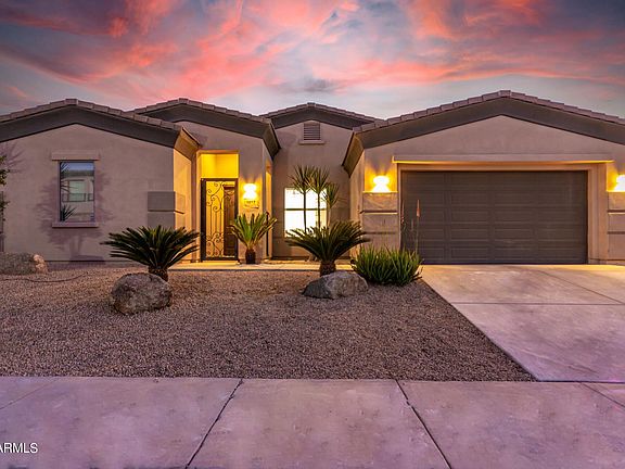 Enchanting 4 bed + den home located in a highly desirable Gated Community in North Phoenix! A great curb appeal and a custom ironwork front door welcome you. Upon entering, you'll discover a spacious den w/barn doors. Continue into the great open floorplan boasting plush carpet & stone accented fireplace in the living area. Wide-open kitchen has a center island w/breakfast bar, SS appliances, beautiful cabinets, and a mosaic backsplash. Split main bedroom features access to the backyard and full bathroom w/dual vanity, jetted tub, and a walk-in closet. The secondary bedrooms share a Jack & Jill bath! Don't forget about the mudroom! Serene backyard offers a firepit, covered patio, a dirt area ideal for planting grass, and trees that will continue to mature to add privacy. Must see!