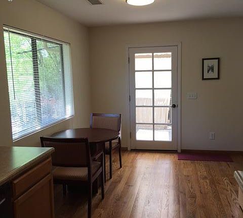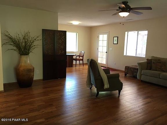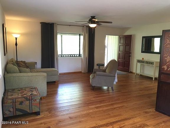 This is a great home nestled in a park-like setting on a quiet cul-de-sac near Thumb Butte & only minutes from the square, restaurants, shopping & the great outdoors! Gorgeous wood floors throughout with tiled floors in both bathrooms & laundry room. Enjoy the morning sunrise or evening sunset on the wrap-around deck overlooking a wet-weather creek & mature trees. Great, natural light throughout the living room, dining area & kitchen. The three bedrooms feature large walk-in closets. There's plenty of storage in the large closet off the hall or utility room off the carport. There is a 2% city tax that will be added each month. *NO STUDENTS*. No pets - AAO.