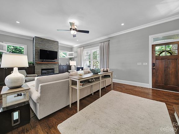 Stunning custom, craftsman 3-Bedroom home located in the highly sought-after Plaza Midwood. You'll be greeted by an oversize, welcoming front porch and upon entering the home there are 10-foot ceilings with an open floor plan perfect for entertaining. Coffered ceiling add a touch of elegance. The kitchen is a dream with high-end appliances, gas cooktop and plenty of counter space and cabinets with a large walk-in pantry. The great room is a cozy and inviting space, complete with a stunning floor-to-ceiling stone fireplace and built-ins on either side. The luxurious primary suite boasts a spacious walk-in closet and a spa-like bath featuring a sizable walk-in shower and double vanity. Fenced backyard features a brick patio complete with a fire pit. The large detached garage offers additional storage space. Enjoy the parks with tennis, soccer and pickle ball nearby. Minutes to uptown Charlotte, highways, hospitals, airport and all the great dining, shopping and entertainment!