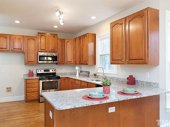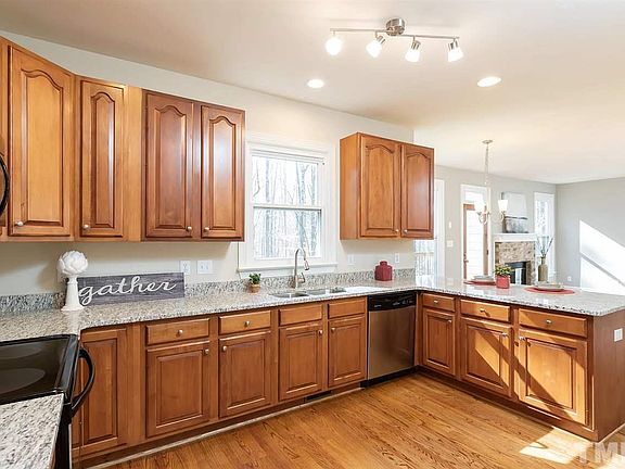 Situated on over 2 acres in fabulous N. Raleigh location. Over 3000 finished & 1800 unfinished sqft, 2 car garage. Main level w/refinished hw floors, Living & Dining Rm, Family Rm w/wood burning fp. Kitchen w/SS appliances, granite counter tops. 2nd level - Master Suite w trey ceiling, walk in closet, granite dual vanities, jetted tub & walk in shower. 3 additional Bedrooms upstairs two with walk in closest and a Bonus room! Hall Bath w/granite counter tops. NEW WINDOWS & NEW DECK! New paint, carpet!