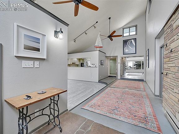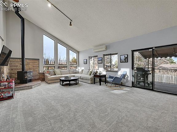 Captivating 1962 Mid-Century Home in Skyway Park Estates! Nestled on a spacious 14,421 sq. ft. lot, this stunning home is just steps from 545-acre Bear Creek Park and located in the top-rated District 12 school system. NEW ROOF | NEW PAINT | NEW BOILER | NEW TANKLESS WATER HEATER | NEW ELECTRICAL PANEL | NEW DECK | NEW FLOORING! Inside, you'll find breathtaking two-story windows in the front living room, flooding the space with natural light. A unique wrap-around stone fireplace and wall of windows seamlessly connect the family and dining rooms, creating an inviting atmosphere. Main Level Features: Fresh new carpet & stylish sunken living room, Spacious master suite with en-suite shower, Two additional bedrooms + hall bath, Convenient main-level laundry, Built-ins & ample storage throughout. Step Outside & Entertain! Enjoy mountain views from your custom wrap-around composite deck with sleek metal railings—perfect for relaxing or hosting guests. Versatile Lower Level: Large family room + walkout patio access, Two additional bedrooms & bathroom, Second kitchen & laundry—ideal for multigenerational living or rental income. Energy-Efficient Upgrades A high-efficiency boiler & tankless water heater keep utility costs low! Outdoor Highlights: In-ground trampoline for fun & play, Curved driveway & attached 3-car garage for plenty of parking. This one-of-a-kind mid-century gem blends timeless charm with modern upgrades in a prime location—don’t miss out! Schedule your showing today!