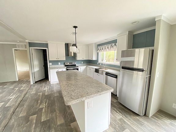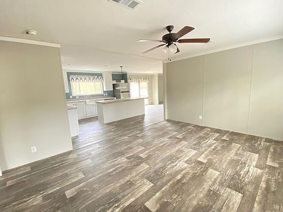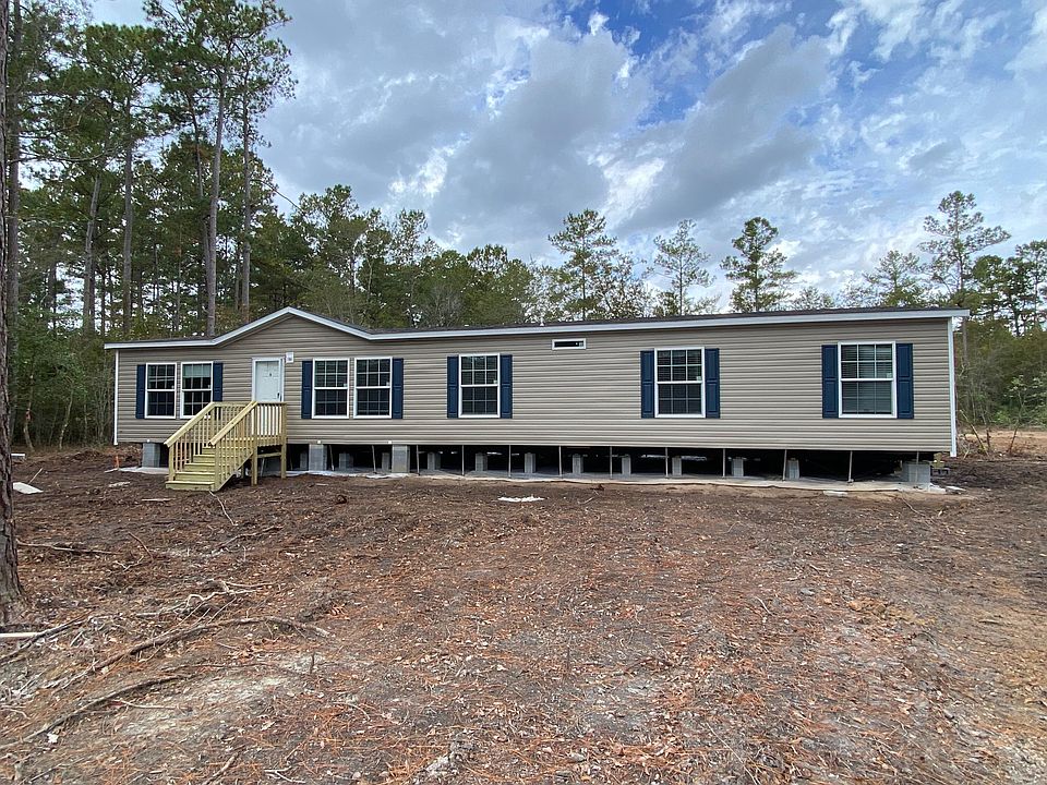 Excellent quiet, private, and country living on 2 mostly wooded acres. As you walk into your new home, you will notice the wonderful open concept living spaces. The home features two living areas, and a huge kitchen with a large island. There are four spacious bedrooms including a large master bedroom with a huge master bathroom with a tub fit for two, dual vanities, and a separate shower. The kitchen features a large kitchen island, all stainless steel appliances, and a beautiful view of the backyard from the kitchen sink.The additional bedrooms are of great size and are opposite of the master bedroom for privacy. Lastly, this home sits on two beautiful private acres. Home will be detitled and is approx 30 days from completion. Home will have a brick skirt.