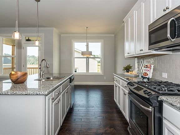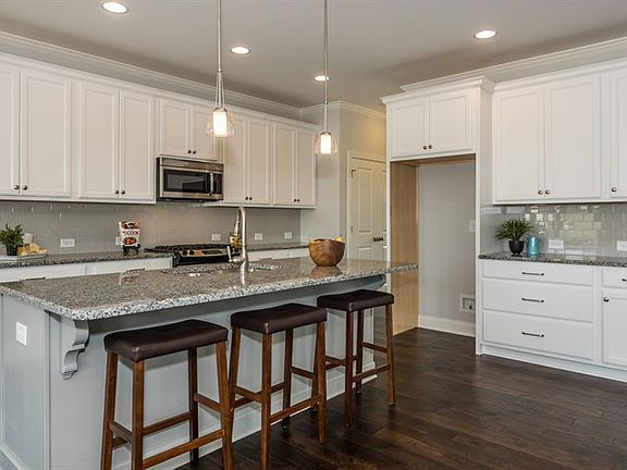 Wonderful Jackson plan built by Homes By Dickerson in Wendell Falls, with bedroom/study downstairs and full bath, open kitchen and family room, large master suite with walk-in closet, laundry upstairs, screen porch overlooks lovely back yard.