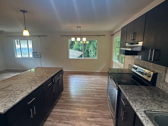 Enjoy this Modern 5 BR 3 full bath house with 2 covered garage parking stalls. Upstairs has 3 bedrooms and 2 full bathrooms complete with range/oven and refrigerator/freezer. Downstairs has 2 bedrooms and 1 full bath as well as a refrigerator/freezer. Large concrete space behind garage gives additional functionality and appeal. Full size washer and dryer. Excellent and safe area for families. Highly convenient location in the Wahiawa area: close to Wahiawa hospital, Foodland, Longs Drugs, school, restaurants and more. About a 13 minute drive to Schofield Barracks Commissary. Tenants responsible for utilities, cable tv, telephone, and internet. Sorry no pets, no smoking, no vaping. Available now. Respond to posting for showing and details. Ho'okela Realty LLC Tenants responsible for utilities, cable tv, telephone, and internet. No pets, no smoking, no vaping.