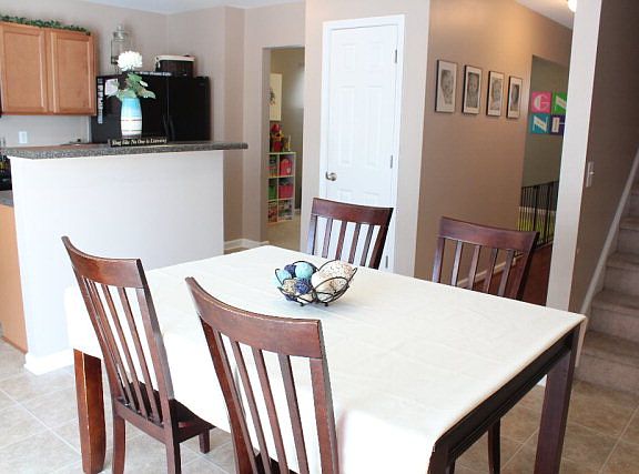 Large 2 story home, features 4 BR, 2 BA and Laundry upstairs. Huge master with tray ceiling is currently being used as classroom and includes master BA, garden tub, double sinks, private toilet and 2 walk-in closets. Downstairs features formal dining room currently being used as a kids play area and a kitchen-living room open floor plan. Two car garage, fenced backyard, sprinklers. Floor plan inl.