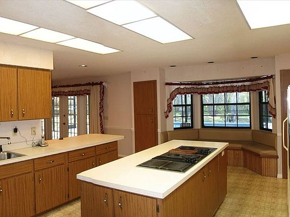 This sprawling brick ranch home, framed by stately live oaks and beautiful azaleas, is situated on almost an acre wooded corner lot on a quiet street of well maintained homes, yet close to town, shopping and a nice evening walk to pretty Lake Olivia. Big kitchen and family room overlook the caged pool, and kitchen features a breakfast bar and dinette nook. Wood burning fireplace is set in custom cabinets with wood hearth. Two master suites, with the main one overlooking the pool. You'll love the 7X14 walk in closet and big bath with whirlpool tub, dual vanity and shower. Formal living and dining rooms are great for entertaining. Hall cabana bath has pool entry. Oversize garage with two doors and 'Skeeter Beaters'. Solar heating for pool. Dual AC systems new in August 2016 per seller. Two water heaters. Great family home with lots of room to grow!