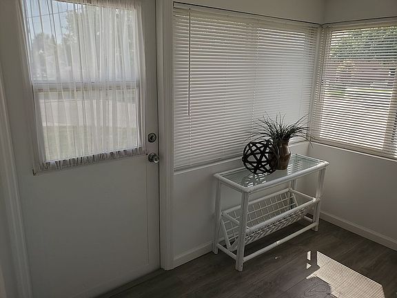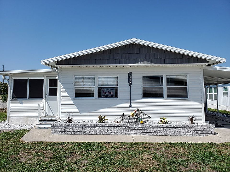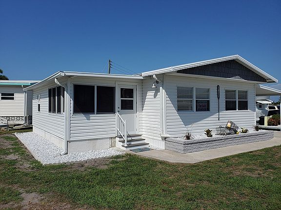 Corner lot within walking distance to all park amenities. What a nice breeze! This home is completely renovated with new plumbing, electrical, AC/heat, windows, doors, siding, insulation, drywall, flooring, tile bathrooms, walk in shower in master, big master closet and new kitchen with stainless appliances and peninsula with seating. Large 12' x 12' shed attached to home and additional shed on rear of property for more storage. Decorated with a coastal flair. All you need to do is move in. Welcome home.