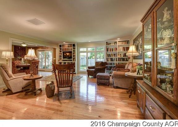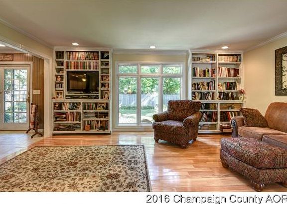 Immaculate home with all of the modern updates! Your home search stops with this 4 BR, 2.5BA brick and cedar ranch. Mechanical updates include high efficiency furnace and air conditioner, tankless instant hot water heater and 2 sump pumps. Cosmetic updates include new flooring, crown molding, built in bookcases, most windows have been replaced and custom plantation blinds. Master suite includes recent bathroom addition with huge walk-in shower, jetted tub and walk-in closet. Kitchen with Corian counters, custom tile backsplash, and SS appliances. Enjoy the remote control fireplace in the hearth room or step out back into the fenced yard with mature trees, low maintenance landscaping and garden shed. You will appreciate the low county taxes & proximity to the University of Illinois.