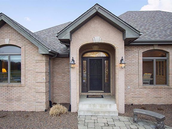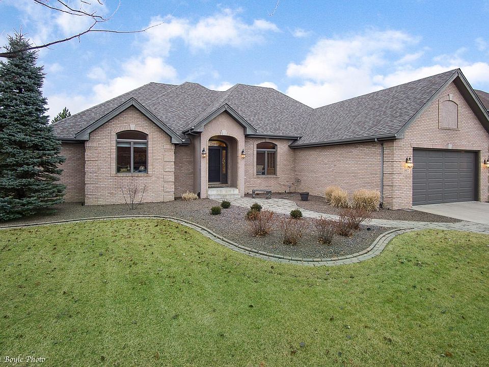 This impressive all brick ranch offers 4800+ sq ft of living space and five star updates, plus the open design you've been searching for. Custom features thruout include hardwood flooring, tray & vaulted ceilings, granite, 6 panel doors, crown moldings, trim & more...A grand foyer leads to spacious great room w/ fireplace. Dining room & office are steps away. The huge fully equipped kitchen has room for everyone! Plenty of cherry cabinetry, center island with cooktop & breakfast bar, built-in buffet & appliances. Private master bedroom suite with his & hers walk-in closets, whirlpool tub, double sink vanity. Two other bedrooms share Jack & Jill bathroom. Guest half bath & nicely finished main flr laundry room too. Lower level is amazing! A quality renovation featuring huge family room, full kitchen w/ built-ins, game area, exercise space, 2 additional bdrms, 3/4 bath, work room and endless storage. Freshly landscaped fenced yard, stone pathway,ingrnd sprinklers, new deck, heated garage