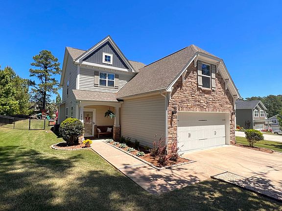 Gorgeous craftsman home on large private lot in sought after Rustica Oaks, complete with community pool and playgrounds! This bright and open Henderson floor plan by Mungo Homes features upgrades galore. Hardwoods throughout first floor. Granite countertops, subway tile, shaker cabinets, and stainless steel appliances in large kitchen. Open concept to living room and sunroom. Coffered ceiling in dining room. Office space and custom mud bench drop zone directly off the partially finished 2.5-car garage. Spacious master suite and second floor laundry upstairs along with huge bonus room or 4th bedroom. Enjoy the large fenced backyard with mature trees for added privacy. Custom shed provides ample storage. Expansive wraparound patio with cedar gazebo is perfect for entertaining! All that in an unbeatable location! Only 5 miles to Duke/RTP/NCCU/downtown Durham/Southpoint Mall. Just 10 miles to RDU Airport/UNC/Brier Creek Commons/Morrisville. Easy access to all major highways (I-40, I-147, I-70, NC55, and NC54).