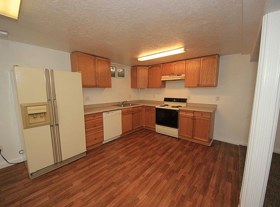 Bonus living room area would be great for office or formal living room Kitchen has pergo flooring and includes fridge, stove, and dishwasher Spacious bathroom with lots of linen closet space Washer & Dryer hookups Water, sewer, garbage, gas, and electric included! No pets or smoking allowed on the property!