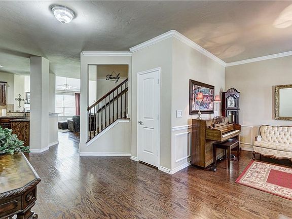 You will love this gorgeous, one of a kind 5 bed, 3 1/2 bath with extra living and bonus room tucked back away from all the traffic at the back of the culdesac in Kimberly Crossing. Relax on your large, covered front porch. Entertain in both of your downstairs living areas with cathedral ceiling and crown molding, open to your entry, kitchen and dining complete with powder bath. Retreat to your large master suite and bath spa with his and her raised vanities and whirlpool tub. Cook and entertain at the same time in your open kitchen with beautiful granite and stainless appliances. Your kids and guests will have their own space with a huge bonus room with balcony overlooking the neighborhood, 4 beds and 2 baths and a 2nd balcony overlooking your backyard attached to the back bedroom with jack & jill bath. Front upstairs bed has built in suspended bed that stays with the home. Tons of storage with closet under stairs. Huge backyard separating you from neighbors complete with storage shed