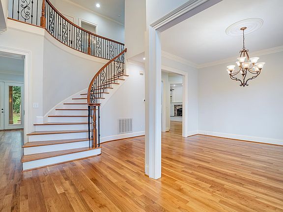 Stately elegance is awaiting you in this custom built home nestled on a manicured cul de sac lot. Venture through the double glass doors and be greeted by a two story foyer, grand staircase and freshly refinished hardwood floors. Formal dining room and office are to either side of the foyer. Formal living room w/access to covered back deck provides a quiet oasis to curl up and relax. Family room is open to kitchen and touts a gas log fireplace flanked by built ins. Lovely bay window graces breakfast nook. Kitchen has center island double wall ovens, gas cooktop, microwave, granite counters. Primary bedroom located on 1st floor w/sitting area & access to covered back porch, gorgeous primary bath w/separate vanities, jetted tub, and a fabulous walk in closet. Second floor hardwoods & stairs have been buffed and resealed. Built in bookcases at top of stairs. 2 bedrooms have ensuite baths, w/the 3rd bedroom shares a bath with bonus room. Exercise room & walk in attic finish out the second floor. Outdoor living space includes covered back deck, patio and fireplace-great spot to enjoy a cool Spring or Fall evening!