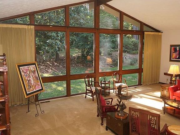 Sprawling mid-century modern ranch awaits your martini glasses & kitten heels. Enter thru antique hand-carved dbl doors to massive vaulted living rm w/wall of windows viewing private, fenced bkyd Eat-in kitchen views courtyd, dining rm seats 12+, oversized rear entry garage for lg vehicles-will fit both your Lincoln Continentals. Vaulted bdrms, priv deck off master with hot tub. 2 fplcs, sep laundry/mud rm, sun rm. Smoke Rise Golf Club, Stn Mtn Recreation Area. Spacious, flowing, perfect for parties. Meticulously maintained. Don Draper would be green with envy.