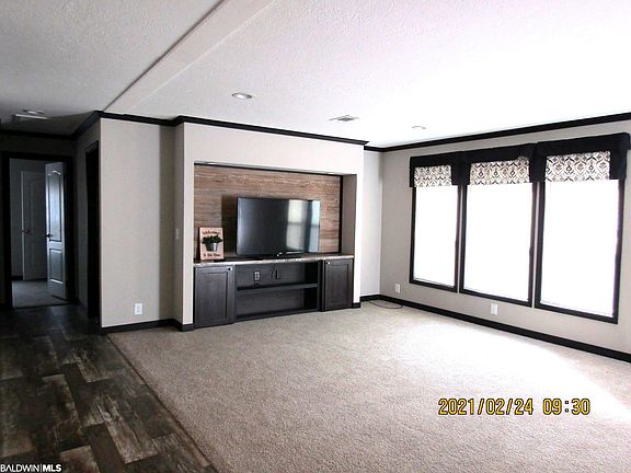 2021 Clayton Double Wide in Spanish Cove! This brand new home has only been stayed in twice. Still smells new. Beautiful Big eat in kitchen with granite counters, Dark Cabinets, island sink & dishwasher, pantry with barn door. Large Laundry room. All bedrooms have walk in closets. The master bathroom is 12x13. with walk in shower & separate tub. Double vanity. Smart controls for HVAC system.Split floor plan. This home has a 50amp RV hookup & sewer hookup. Dog kennel is staying. Home comes with bed in each bedroom & large TV in living room. This is a beautiful home! already on the lot with tie downs & skirting. Spanish Cove amenities include a year round pool, 2 clubhouses, tennis courts, Fishing pier & 24 hr security.