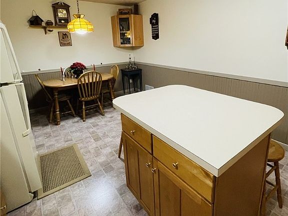 Take a look at this beautiful eat-in kitchen-maple cabinets including a convenient Lazy Susan corner cabinet, a four seat maple island with extra storage, pretty tile backsplash, eat-in area corner cabinets, and all kitchen appliances stay for extra value! Additional features include lots of natural light from the large living room front window, a remote controlled cozy natural gas stove in the family room, extra large three shelf closet on first floor, lovely French doors to family and sun/four season rooms, updated bathrooms, and bookcases in two bedrooms.