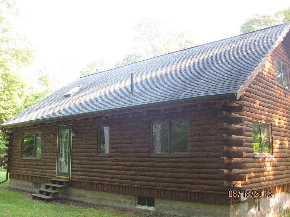 Wonderful 3 Bedroom 1 Bath log home with multi-level deck on beautifully wooded 40 acres. Freestanding wood fireplace in LR, family room partially finished in basement. Would make perfect home or recreational parcel, great hunting in the area. Includes great oversized polebarn/garage, sheds for your wood, toys, etc.