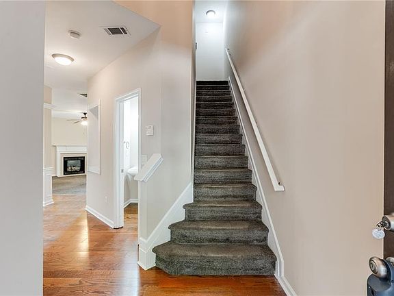 This spacious 3-bedroom, 2.5-bath townhome in the desirable Ellison Lakes community offers nearly 2,000 square feet of comfortable living in a prime Kennesaw location. The home features brand new, light-colored carpet, adding a fresh and modern touch to the already inviting interior. A bright two-story foyer welcomes you in, with hardwood flooring extending through the kitchen, dining area, half bath, and entryway. The open floor plan includes a large great room with a marble fireplace and a separate dining area that is perfect for both everyday living and entertaining. The kitchen is well-appointed with solid surface countertops, stained cabinetry, a pantry, and a clear view into the family room. Upstairs, a spacious loft area offers flexible options ideal for a sitting area, home office, or media space. The oversized primary suite features a double vanity, soaking tub, and separate shower. Two additional bedrooms, a full bath, and a convenient laundry room complete the upper level. Additional highlights include a two-car attached garage with automatic opener and a private rear patio overlooking a landscaped yard. Enjoy access to fantastic community amenities, including a clubhouse, pool, and lake. Conveniently located near KSU, I-75, shopping, and dining. This townhome offers comfort, convenience, and flexibility.