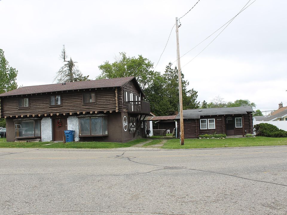 DEDICATED LAKE ACCESS WITH DOCKING AND MOORING RIGHTS! FULL LAKE VIEWS ON THESE 2 LOG HOMES with commercial and residential zoning. The small cottage is Move-in ready 1 bedroom, 1 bath 400sq ft with cathedral log beam ceilings, gas fireplace and newer windows giving you that up-north feel. The large building is zoned commercial has 2 bedrooms, 1 bath move-in ready upper floor living quarters with balcony offering awesome views of Houghton Lake. Large Private backyard with firepit, and garage. Updated Electrical and Plumbing along with newer roof on rear structure of the large building.. Lower level is unfinished with unlimited potential for creative commercial use. Good VRBO property. Call today!