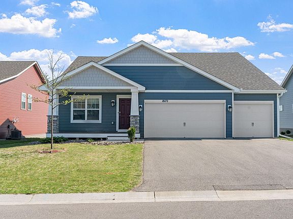 Welcome to this inviting Lakeville 2021-built home in Pinnacle Reserve! Enjoy a gourmet kitchen with Baltic Blue Cheswick cabinetry, white granite counters, and stainless Whirlpool appliances. Luxury vinyl plank flooring, a finished walkout basement, and a cozy gas fireplace with 4-sided trim add comfort and style. Bonus features include a tankless water heater, in-ground irrigation, faux wood blinds, and Smart Home tech. Enjoy summer evenings on the deck overlooking the backyard, perfect for relaxing or entertaining. Conveniently located near parks, schools, and local amenities with easy access to major highways—this is a great place to call home.