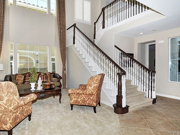 Gorgeous home in Vista Del Verde called Greenbrier built by MBK Homes! Quiet cul-de-sac street with forever views. Formal living and dining room with custom built-ins! Family room, breakfast room and kitchen are all open and bright! Family room is perfect for everyday living. Oversized downstairs bedroom with private full bath and separate entrance. Perfect for a home office or in-laws quarters. Master bedroom suite offers sitting area, custom built-ins and a balcony with unobstructed views of city lights and Catalina. The master bath has dual vanities, dressing table, oval soaking tub, large shower and dual walk-in closets. Two additional bedrooms upstairs share a generous hall bath. The open bonus room is perfect for TV viewing and room for home office. The upstairs laundry facility has plenty of storage and sink. The lot is one of the largest in the tract and was professionally built with pavers, custom barbecue, covered seating and easy landscaping. The backyard is private- a great space to entertain and no house behind. Two car attached garage offers epoxy floors and cabinets. The upgrades are numerous with designer selected window coverings, shutters, neutral paint, 24in tile, granite, stainless and additional lighting. This is a favorite community with low taxes and no HOA. Walk to award winning Lakeview Elementary School and a several community parks. Close to shopping, dining and freeway access.