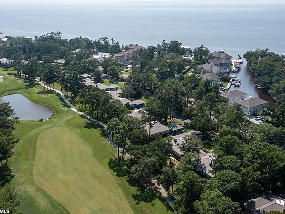 Must see this incredible Mobile Bay waterfront condo in Point Clear Landing Phase IV (which includes 2 duplexes). Built in 2021, E1 is a decorator's showcase offering 3 bedrooms, 2.5 bathrooms, elevator, full-house generator, 2 covered porches overlooking the private marina, 1 side porch, deeded boat slip (water depth 4'+), and more. Entire condo showcases clean lines to include a glass railing stairwell, tall white walls/ceilings, white quartz counters on creamy white cabinets, and luxury vinyl plank flooring throughout. Main floor houses kitchen/dining/living and a powder room. Kitchen features a large island, walk-in pantry, premium stainless appliance package, and bar area. Upstairs has Primary bedroom, 2 guest bedrooms with plenty of storage, and laundry room. Primary suite has a tile walk-in shower, dual sink vanity, walk-in closet, private balcony. Laundry room has cabinets and a utility sink. Tankless water heater. Condo amenities include gazebo and wharf, fishing pier, sandy beach, bulkheads, walkways. Double car garage with loads of shelving, storage underneath condo. Irrigation system. Convenient guest parking beside condo. Association fees include management, common area maintenance, insurance, pest control, trash. Close to Lakewood's golf and tennis as well as Marriott's Grand Hotel Golf Resort & Spa; hospital, shopping and dining. Enjoy the walking/bike trail in front of complex on Scenic 98. Seller is related to Listing Agent. All information deemed reliable and accurate.