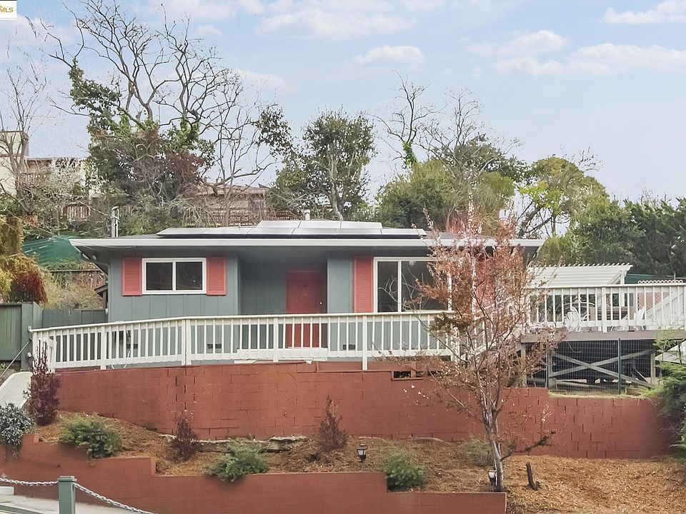 Welcome to Walnut! This charming property consists of a 2-bedroom,1-bath house (1122sf) inclusive of a beautifully updated kitchen, good lighting, and easy indoor-outdoor flow. Plus a 377 sq. ft. detached structure, offering additional space for an office, third bedroom, or teen zone - complete with a ½ bath. Situated atop a hillside, this location is quiet and with relaxing hillside views. Enjoy weekend entertaining or evening meals on the expansive deck. Solar panels (owned) and a Franklin Smart Battery offer energy efficiency and savings. Located on a serene street, there’s Parsons Park on one end and Castro Valley Community Park on the other. With easy access to Lake Chabot through a nearby neighborhood gate, outdoor adventures are just around the corner. Plus, you're less than one mile to Chabot Elementary. Don’t miss this unique gem!