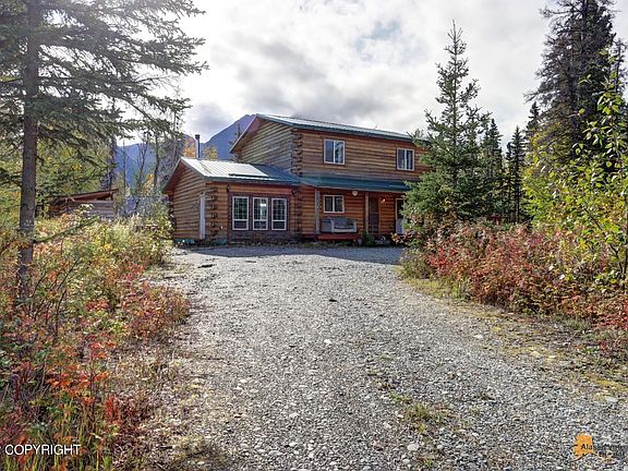 Beautiful square log home with Pioneer Peak looming in the back ground. This lovely home offers 3 bedrooms, 2.5 baths. Open concept Kitchen, dinning and living space. Garage was converted to additional living space with a cozy wood burning fireplace. Relax in your jetted tub and enjoy views of Pioneer Peak. Home has nice sized deck and plenty of room for gardens and privacy! Truly an Alaskan home.