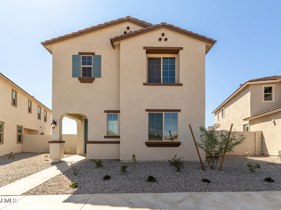 MOVE-IN READY. First of its kind in the desirable master planned community of Estrella. 4 bedroom, 3.5 bath High Performance Home consists of a first-floor open concept with the living room, dining room and kitchen creatively laid out with side yard patio AND first floor bedroom w/attached full bath. Upgraded flooring, counter tops and 42'' white cabinets are just some of the features. Upstairs is a large open loft, two secondary bedrooms, and upstairs laundry! Large primary suite with enormous walk-in closet and oversized shower. Home is equipped for home automation, and promotes a healthy lifestyle with a built-in air purification system. Enjoy front porch living with plenty of common spaces to enjoy the Arizona weather and nearby community center!