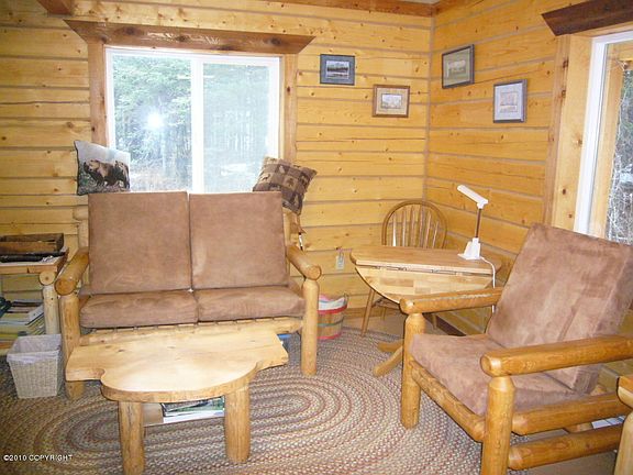 Beautiful Merrick Square Log Home! Pride of Ownership is evident! Live your Alaskan dream on 1.26 acres. All appliances and many furnishings stay with full price offer, see supplement.Furnishings the seller intends to include with full price offer: Alaskan Birch Love Seat & Chair w/Cushions, Area Rug to Match. Dining Room Table - Solid Wood, Light in Color Includes 6 Chairs, 2 Leaves, Small Hutch Queen Log Bed with Mattress, dresser, 2 overnight stands Queen Log Bed with Matress, small dresser Washer & Dryer Refrigerator