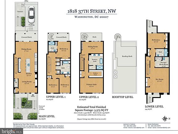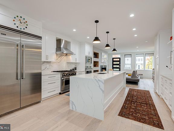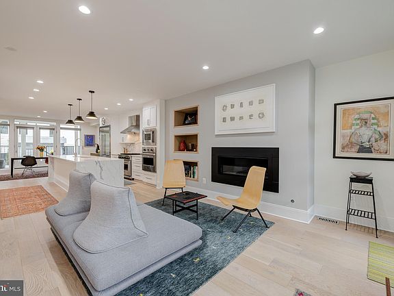 This home is exceptional with a stunning and contemporary exterior, high-end finishes, and sophisticated architectural details. Its flawless design offers more than 3,300 square feet of living space, including 5 bedrooms, 4.5 bathrooms, multiple outdoor balconies and a roof-top deck with tree-top views. The main level features a spacious open floor plan with wide-plank flooring, large windows for natural light, and a gas fireplace in the living room. The gourmet kitchen is equipped with a full suite of stainless-steel Viking appliances, quartz counters, and ample storage. The rear dining room, which has glass French doors opens to the rear deck and fenced yard. The second and third levels offer three bedrooms and two baths (one ensuite) on the second level, and a luxurious primary suite on the third level with a custom walk-in closet, en-suite bath, sitting room and private balcony. The lower level has a family room/flex space with separate front and rear entrances, a spacious bedroom and full bath, and a utility room with storage and a washer/dryer hookup. This home also has a parking pad with a roll-down garage door and access to the rear alleyway. Don't miss the opportunity to own this distinctive and stylish home.
