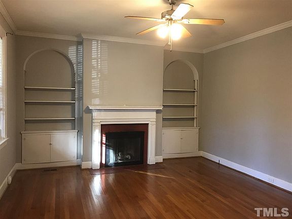 Check out this beautiful all brick ranch style duplex on a dead end street in Hayes Barton. Walk to Cameron Village. Huge covered rocking chair front porch + back deck, High ceilings, fireplace, sep dining room, stainless frig, Easy private parking with paved wrap around circular drive. Nice, quiet easy living area & floorplan. Available Today! Check it out today!