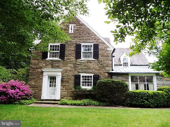 Serenely nestled in sought after Baederwood amidst tall trees & perennial gardens sits a stately circa 1935 stone colonial expanded,renovated & tastefully improved w/upgrades & amenities appealing to an olde home enthusiast desiring a melding of long standing tradition with modern improvements & comfort.Attention to detail is clearly displayed throughout the impeccably crafted addition & renovations.Timeless features incl: arched & cased entries,class hardware,millwork, baseboards,crown moldings,deep sill windows,exposed hardwood floors,plaster walls,custom and traditional cabinetry and built-ins!Time honored charm & character are embraced by Chestnut Hill stone structure,slate roof,flagstone walkways and a striking stone pillared arbor.Passing through the front door we are greeted by the customary welcoming foyer guiding the way past the conveniently located powder room through the arched entry to the stunning formal living room presenting a classic wood burning stone FPL with colonial mantle & slate hearth creating a warm & inviting feel to the conversation.An arched entry escorts you to the handsome formal dining room drenched in natural light cascading thru the long walk-in bay window enhanced by a crystal chandelier awaiting a large gathering for a sumptuous feast or a timely get-together for any occasion.Adjacent,thru louver door access,the original kitchen is now utilized as the butler's pantry/den with wet bar etc.The expansive FmRm bathed in natural light streams thru the glass panes of the large box bay window while projecting a panoramic overview of the gorgeous deep rear yard promoting an atmosphere of relaxation & enjoyment.Focal point of the room is the custom arched built-in cabinetry which is complete with an arch over the access to the dining room.The sizeable eat-in kitchen was designed offering the chef of the home state of the art features like a 5 burner cook top(center griddle),dishwasher,ceramic sink w/disposal & plenty of cabinetry & couters