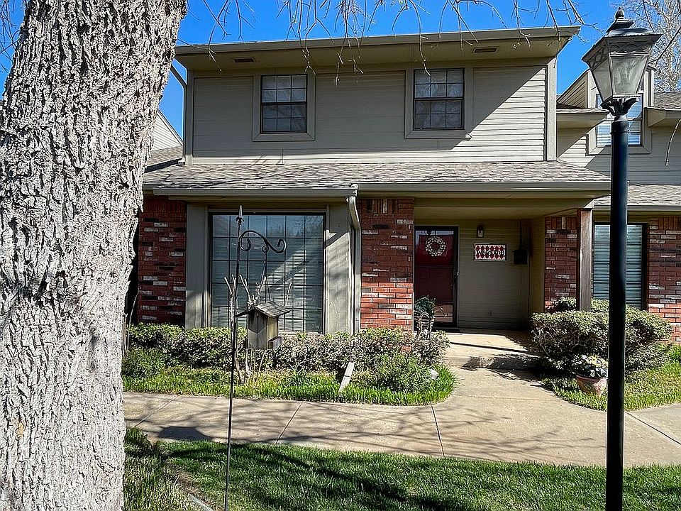 Comfortable living with exterior maintenance and yard work done by the association. This town home has a downstairs master with two bedrooms up, good size living area and kitchen, and a corner atrium that lets in natural light. The living and kitchen also has Sola tubes for more light. Rear entry garage with garage door opener, and covered front porch. 1.5 miles from I-35 and close to Spring Creek shopping centers. Text 405 640-5371