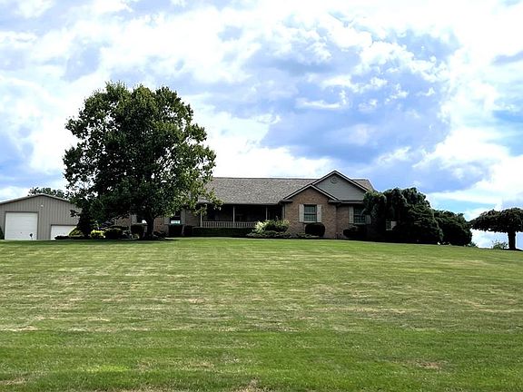 14.38 Acres- Beautiful rolling hills, quiet country road. Quality made Brick ranch- 1 owner. 36x60 pole barn w/ 2 overhead doors 12'x12'8" and 8'x10'. House includes solid core oak doors, master suite w/ bath & walkin closet.