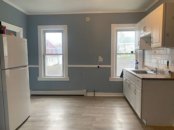 This second floor apartment has been recently updated and freshly painted ready for immediate occupancy! Spacious living room overlooking from porch, large eat-in kitchen with plenty of cabinets, range w/oven and refrigerator. 2 Bedrooms (or 1 bedroom plus den) and 1 full bath wit tub. Pet friendly, conditions apply. Tenants responsible for gas, electric, cable and internet. Landlord responsible for city water, sewer, trash removal, lawn care and snow removal. 1 off street parking spot included.