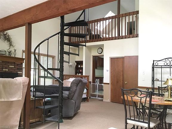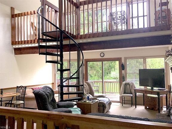 Hidden Gem in Carlisle Twp...tucked in behind a small shop, this home is so much more than you'd ever expect! Sitting on 2.4 acres of park-like land that gently slopes down to the river, this updated home has approx 2640 sqft of living space and a huge great room addition that will leave you WOW'd. With its wood burning fireplace, cathedral ceiling, skylights and two lofts (one with spiral staircase access), this great room spotlights a wall of windows overlooking the scenic backyard. The 1st floor also has a front living room, dining area, kitchen with walk-in pantry, and a nice sized bdrm with hardwood floors across from the full bath. Another bdrm here has been converted to a 1st floor laundry and craft room. Upstairs, you'll find a huge master bdrm with vaulted ceilings, skylight, and plenty of storage space. The rest of the upstairs offers two more bdrms, one of which opens up into a loft area with skylight and half bath overlooking the great room and wall of windows. Outdoors you'll find a large deck, 10'x30' covered patio, fenced area and 3-car garage. Enjoy a stroll out back past the gardens, grapevines, and apple tree through the woods down to the river. Once there, relax as the water cascades over the mini dam just upstream from your own secluded little beach area. Updates include Paint & Carpet 2019; HVAC 2015; bsmnt waterproofed 2014; roof 2013; new windows since 2013; newer plumbing, wiring & panel box; professionally insulated. A definite "Must See"!