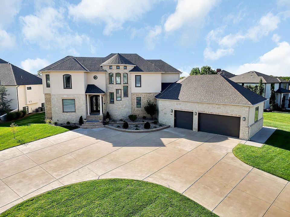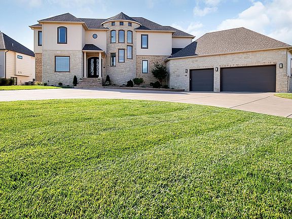 This custom built Nies construction home in Andover school district and Sedgwick county taxes is a rare find as you must see its exquisite details from its accented ceilings in dining to extended height in living room. No expense was left unturned on this one! (receipts for original build show home was not completed until 2016 and tax record shows original date of 2014). The home has a true contemporary feel with clean, white tiled floors, flat front kitchen cabinetry, tiled floor to ceiling fireplace, curved stairway to upper level, exquisite windows for natural light, double iron entry doors and so much more. Starting in the breathtaking kitchen, the home shows like a million dollar home complete with commercial fridge/freezer, double oven gas range complete with griddle and 6 burners, walk in pantry, island that sits at least 4 persons, quartz countertops, adjacent dining area, and modern open floorplan. The current homeowners have also loved that this home has 2 suites on main level (primary suite with adjacent office, walk in closet, sitting room, and en suite bath)and guest suite with its on attached bath complete with walk in tiled shower. The upper level also has two suites on opposite sides divided by a loft area. The suites are as large as the primary suite have sitting areas, walk in closets and yes, each one has its own attached bath with tiled walk in showers, separate tubs, and higher end amenities. There is also a 1/2 bath on main level, separate laundry room with wash sink, storage and large drop zone. The basement has a large rec room great for entertaining, walk out access to backyard, wet bar, 9 ft ceilings, 2 bedrooms, 1 bath, and an additional room being used as a theater room, plus 2 storage areas. Come this one today as it is rare to find a contemporary home in Wichita at this quality level.