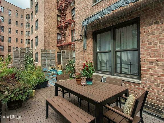 Rare find! This lovely, quiet Jr 4 apartment features an amazing oversized L-shaped private terrace (440 sq ft) on the building's second floor. So large it allows for outdoor dining, potted gardening, and play space or whatever else you may fancy. The unit has a generous living/dining room with recessed lighting, king sized master bedroom, and a sizable flex room. Windowed, updated kitchen with dishwasher and all other stainless steel appliances. Bathroom has been fully renovated and also has a window. Kitchen, bedrooms, and bathroom overlook the terrace, and enjoy western exposure. Hardwood floors throughout, as well as in-wall AC units and four closets.